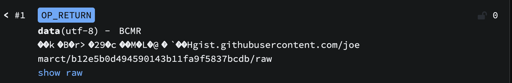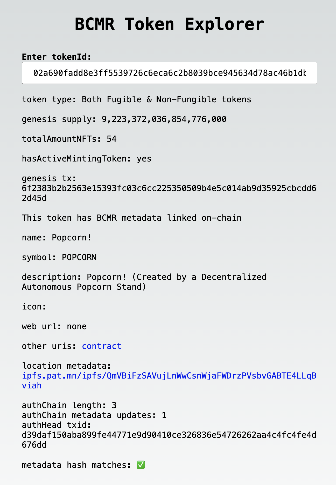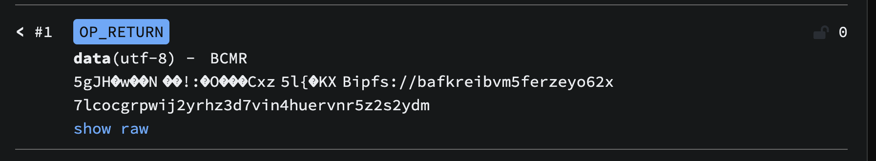 Thus, we need a light and extensible protocol for storing this metadata off-chain. This is where the BCMR (Bitcoin Cash Metadata Registries) specification comes into play. The BCMR conserves block space by linking complex and sometimes-mysterious on-chain data to human-readable off-chain metadata.