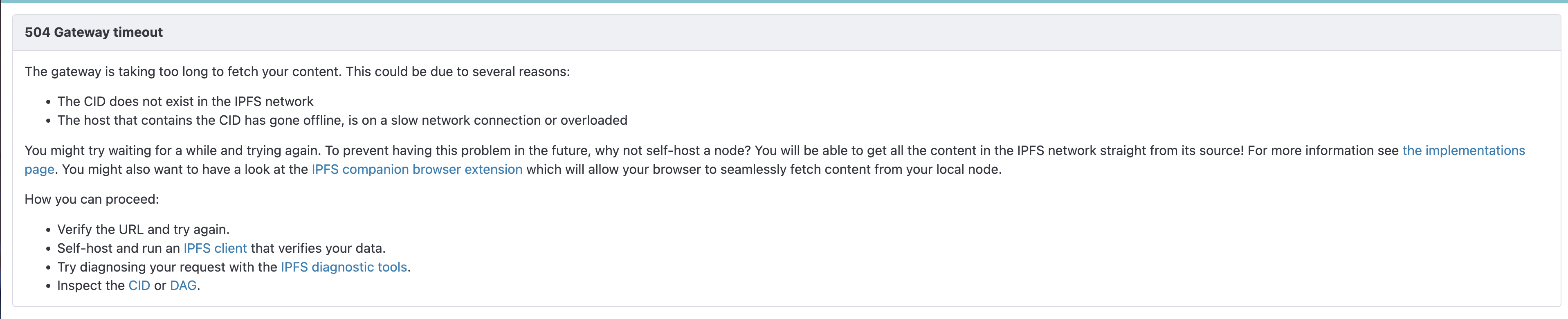 I checked https://ipfs.io/ipfs/`your-CID` and got this error, hence step 3 above.